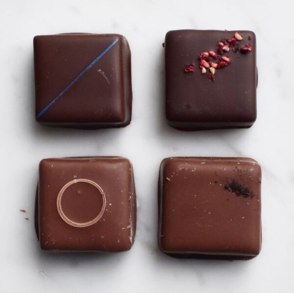 Pralines Dark and milk chocolate with inclusions / filling / flavored – Made by FJÅK
