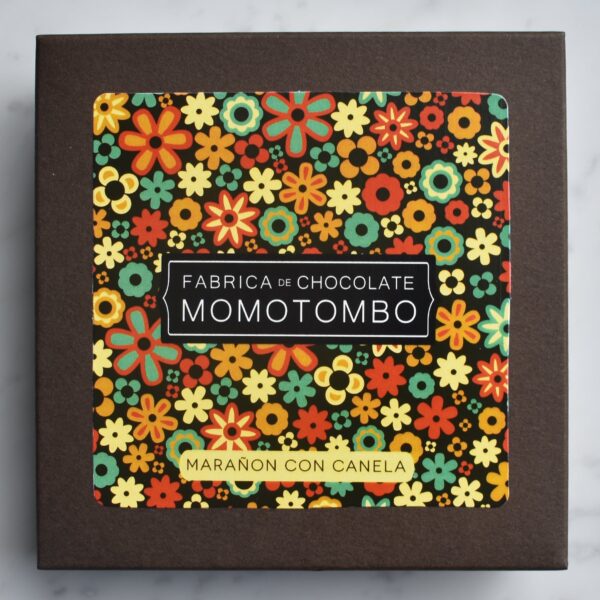 Momotombo, is a bean to bar chocolate maker from Nicaragua. This box contains 15 cashew chocolates covered with cinnamon dark chocolate