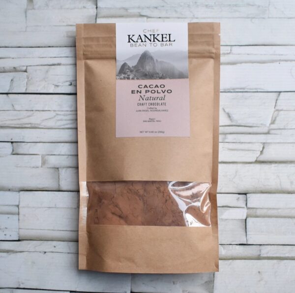 Kankel è un produttore bean to bar del Perù. Questo sacchetto contiene 250 grammi di cacao in polvere del Perù (San Martin), con note aromatiche di agrumi, frutta tropicale, frutta secca, caramello, ideale per uso professionale e per le tue ricette.