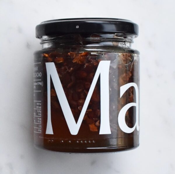 Maüa è un produttore bean to bar della Spagna. Questo vasetto contiene miele di fiori d’arancio con granella di cacao pregiato del Nicaragua.