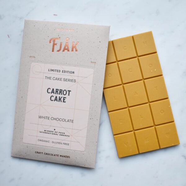 Our carrot cake bar is a creamy white chocolate with carrots and spices.