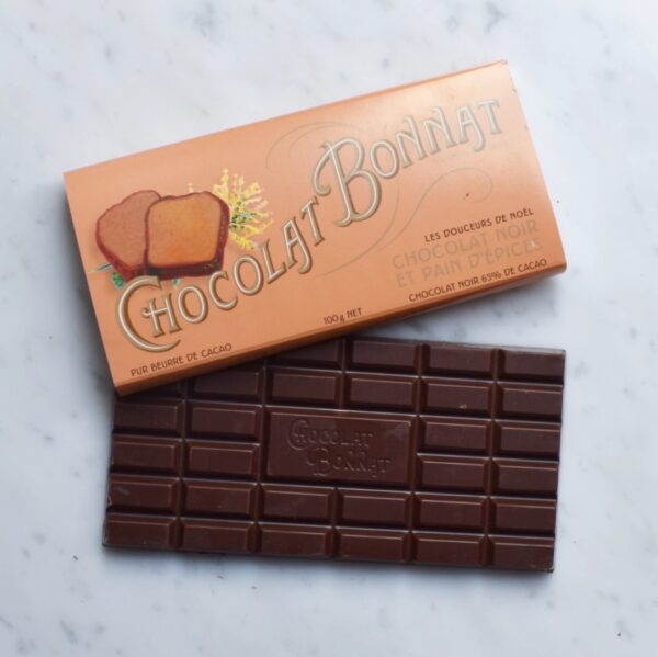 Cette tablette associe notre chocolat Noir 65% Cacao et des éclats de de notre pain d’épices traditionnel
