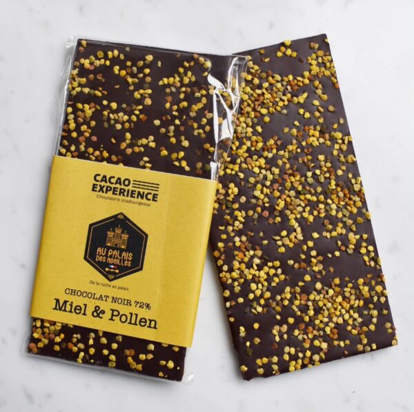 Le chocolat miel & pollen, est une expérience gustative hors du commun. Lorsque le chocolat noir fond en bouche, il libère toute la complexité des arômes du cacao Nicaraguayen. Le miel de fleurs, utilisé dans notre chocolat au miel, vient adoucir cette expérience en dévoilant des nuances florales qui viennent caresser le palais. Cependant, cette tablette ne se contente pas de charmer les papilles, les inclusions de pollen offrent une texture légèrement croquante ainsi qu’un visuel attrayant.