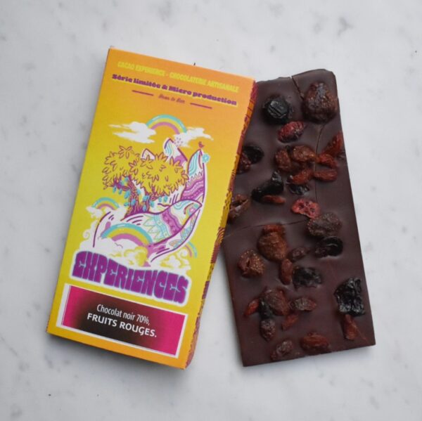 Cacao Experience è un produttore bean to bar della Francia. Questa tavoletta di cioccolato finissimo, è prodotta con cacao della Tanzania (Kilombero Valley, Kokoa Kamili). Cacao Experience Tanzania cioccolato fondente 70% con frutti rossi, è un cioccolato fondente dal gusto gradevolmente acido, con note aromatiche di fragole, amarene, mirtilli rossi, bacche di goji.