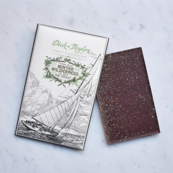Dick Taylor, è un produttore bean to bar degli Stati Uniti. Questa tavoletta di cioccolato finissimo, è prodotta con cacao del Belize (Toledo). Dick Taylor Belize cioccolato fondente 65% Winter wilderness, è un cioccolato fondente dal gusto gradevolmente dolce, con note aromatiche di miele, arancia, nocciola, menta, abete siberiano, sciroppo d’acero. Dick Taylor con questa tavoletta stagionale, ha voluto catturare l’esperienza sensoriale della vita rurale della costa settentrionale della California. Il dolce cioccolato fondente 65% fatto utilizzando cacao pregiato del Belize si fonde perfettamente con l’aroma dell’arancia, dell’abete siberiano e della menta per creare la sensazione fresca e rinfrescante di una passeggiata invernale.