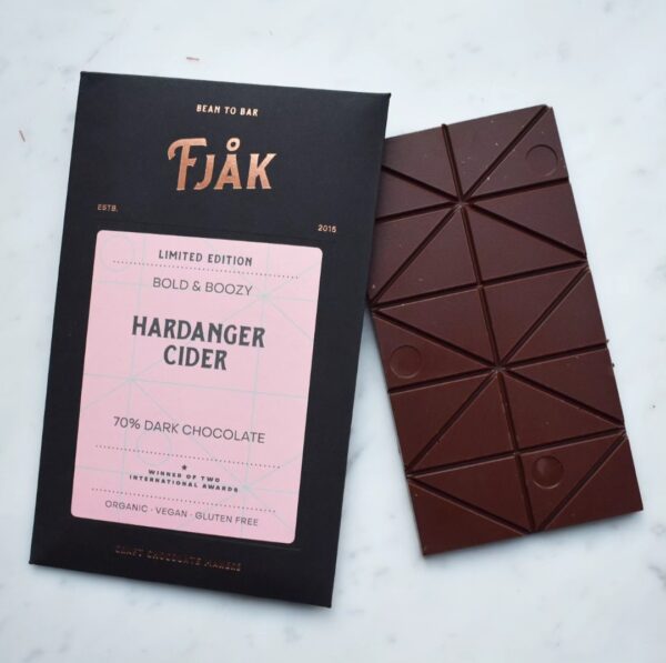 Round dark chocolate with cider from Alde farm in Hardanger.