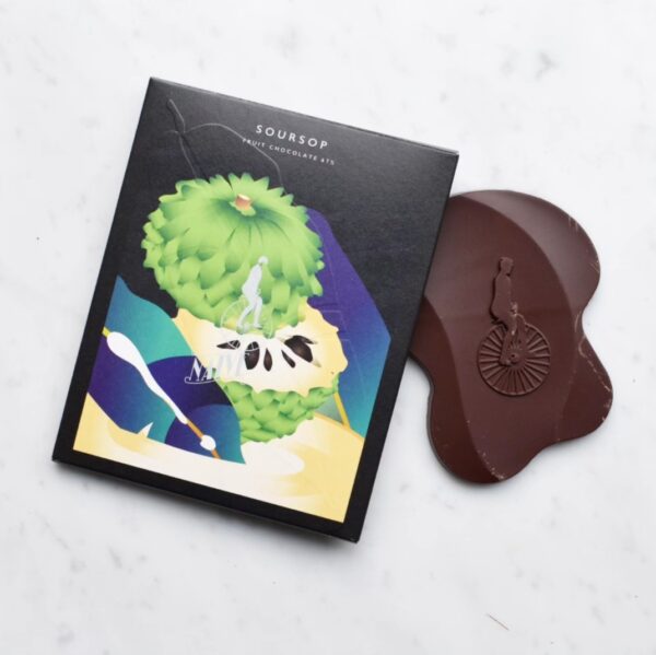 Healthy doesn’t have to be boring, and this miracle fruity chocolate bar sure has a place in the life of the picky chocolate aficionado who plans to live a long, unmiserable, and vigorous life. There are fruits, superfruits, and super mega fruits, but they all bite the dust compared to soursop. Behind the warty spines and thick leathery skin hides the succulent pulp, and oh boy is it delicious! Open your mouth and get ready to heal.