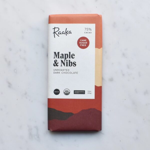 Raaka è un produttore bean to bar degli Stati Uniti. Questa tavoletta di cioccolato finissimo, è prodotta con cacao dell’Uganda (Semuliki Forest). Raaka Uganda cioccolato fondente 75% con sciroppo d’acero e granella di cacao, è un cioccolato fondente dolcificato con sciroppo d’acero, ha il sapore di un brownie appena sfornato. Generosamente cosparsa di granella di cacao tostate per conferire una consistenza croccante. Perfetta per chi cerca zuccheri alternativi.