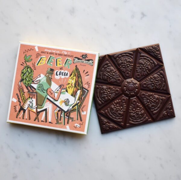 Who will win this fight? The hops add all their bitterness and frantic aromas, the malt its caramel flavor. But will this be enough for the beer to win? Who knows? We made candy from the beer, which made the hops-flavored, fruity-fermented dark chocolate even more exciting.