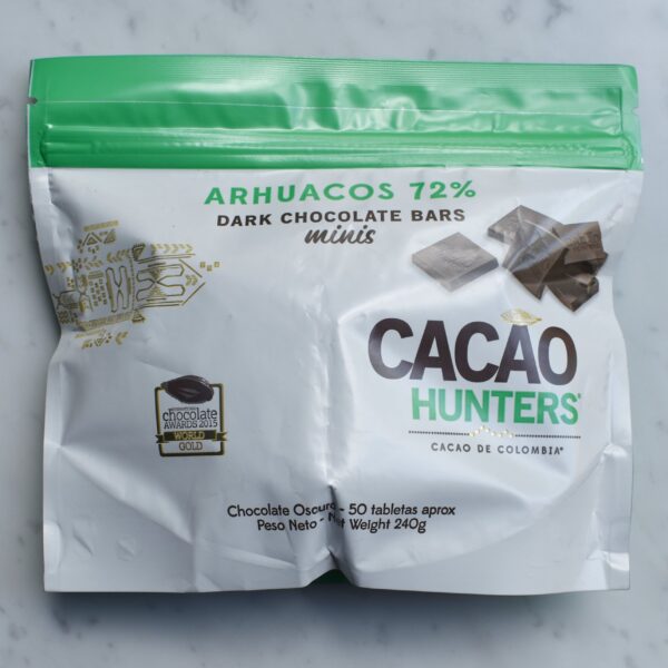 Cacao Hunters è un produttore bean to bar della Colombia (Popayán). Cacao Hunters è stata fondata nel 2013 da Carlos Ignacio Velasco e Mayumi Ogata. Cacao Hunters trasforma le fave di cacao provenienti da diversi angoli della Colombia in tavolette di cioccolato di un singolo terroir. In Colombia vengono coltivate alcune delle varietà di cacao più pregiate al mondo. Il clima e la terra offrono condizioni perfette per produrre cacao eccezionale. Cacao Hunters pone grande cura alla ricerca, alla conservazione e alla promozione di varietà rare e pregiate di cacao selvatico nelle regioni indigene della Colombia preservando la biodiversità nel cacao colombiano.