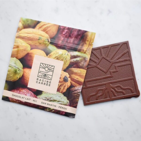 Racine Carrée è un produttore bean to bar della Francia. Questa tavoletta di cioccolato finissimo, è prodotta con cacao del Perù (San Martin). Racine Carrée Perù San Martin latte 45% è un cioccolato al latte, dal gusto dolce, con note aromatiche di miele, budino cioccolato al latte, dulce de leche, caramella alla liquirizia, vaniglia, caramello.